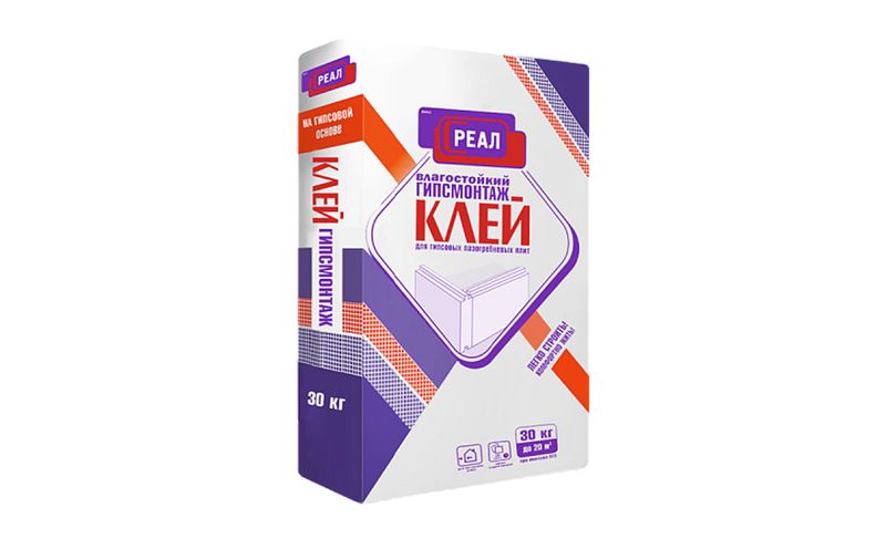 Клей для ПГП Гипсмонтаж РЕАЛ влагостойкий предназначен для монтажа перегородок из водостойких гипсовых пазогребневых плит, бескаркасного монтажа водостойких гипсокартонных и гипсоволокнистых листов, гипсовых элементов, шпатлевания бетонных и гипсовых оснований, например, гипсовых штукатурок, гипсокартонных листов и пазогребневых плит. Для внутренних работ в сухих и влажных помещениях.