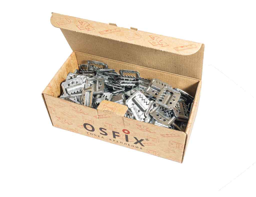 OSFIX кляймер для вагонки – Крепеж с более чем двадцатилетней историей, предназначенный для монтажа досок, имеющих соединение «шип-паз», т.е. для вагонки, имитации бруса, имитации бревна, блок-хауса, МДФ панелей и прочих изделий для внутренней и наружной отделки. Крепеж изготовлен из оцинкованной стали 0,5 мм толщиной. Широкая лапка с двумя ребрами жесткости у основания лучше сопротивляется набуханию древесины и сильнее прижимает доску к направляющим. Изгиб на лапке добавляет удобства в работе. Два дополнительных отверстия позволяют вести монтаж как на гвозди, так и на скобы строительным степлером. Высота лапки 1мм.