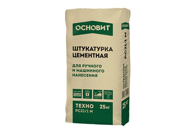 Штукатурка ОСНОВИТ ТЕХНО PC21/1 M предназначена для выравнивания стен из бетона, кирпича, пено- и газобетона.
